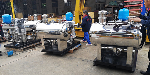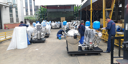 我司大批量不锈钢增压供水机组定制生产完成包装待发中!
