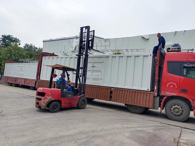 我司供水设备集中箱体生产完成装车发货云南山区生活增压供水!